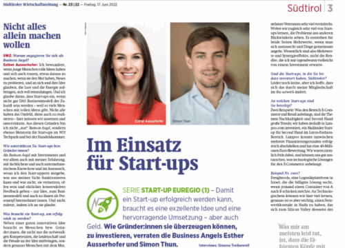 Die Südtiroler Wirtschaftszeitung SWZ hat mit Esther Ausserhofer ein Interview für die Serie Jung&Hungrig geführt.