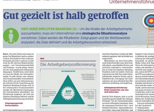 Je passgenauer eine Recruiting-Kampagne auf die Zielgruppe zugeschnitten wird, umso mehr Aufmerksamkeit erzeugt sie. Um die Inhalte der Arbeitgebermarke auszuarbeiten, muss ein Unternehmen eine strategische Situationsanalyse vornehmen. Dabei werden die...