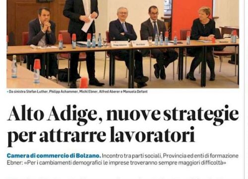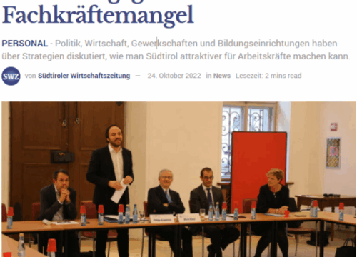 21.09.18: Südstern Business Talk Das brandaktuelle Thema „Fachkräftemangel“ spüren wohl alle starken Wirtschaftsregionen Europas. Im Rahmen des Business Talks disktuiere ich mit interessanten Podiumsgästen Südtirols Wettbewerbsfähigkeit und Attraktivität für Fachkräfte....