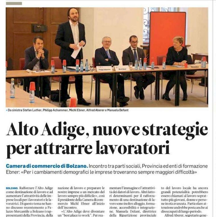 Bolzano. Rafforzare l´Alto Adige come destinazione di lavoro e ad aumentare l´attratività delle imprese locali per i lavoratori e le lavoratrici. Di questo tema ne hanno discusso recentemente a Palazzo Mercantile a Bolzano i rappresentati della Camera di commercio, dei sindacati, delle associazioni di categoria e degli enti di formazione. “A causa del cambiamento demografico le imprese avranno sempre maggiori difficoltà a trovare lavoratori e lavoratrici adeguati, e in futuro la situazione continuerà a peggiorare. Per questo motivo è importante sviluppare strategie creare servizi che servano a rafforzare l´Alto Adige come destinazione di lavoro e preparare le nostre imprese a un mercato del lavoro sempre più difficile”, così il presidente della Camera di commercio Michl Ebner all´inizio dell´ incontro.
