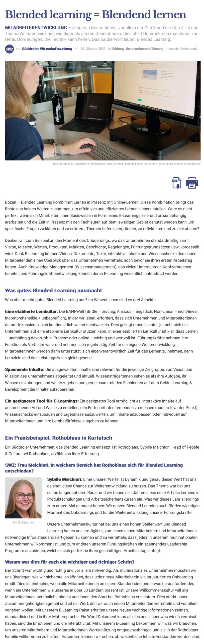 Südtiroler Wirtschaftszeitung – Jüngeren Generationen, vor allem der Gen Y und der Gen Z, ist das Thema Weiterentwicklung wichtiger als älteren Generationen. Dies stellt Unternehmen manchmal vor Herausforderungen. Die Technik kann helfen. Das Zauberwort lautet: Blended Learning.